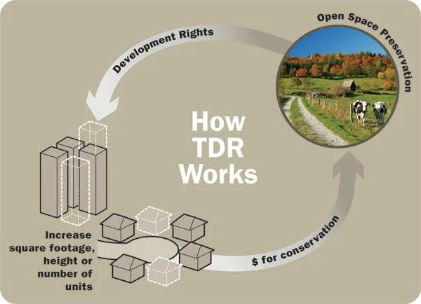 It’s a win/win for land owners and developers. Land owners retain ownership and use of their property, receive a large sum of money to use for property improvements or personal investments, and the land is protected from development forever. The goal of the program is to preserve forests, farms, open space, and the natural environment to maintain quality of life for future generations. With TDRs, developers can increase project unit counts, profits, and allow for “green” marketability.